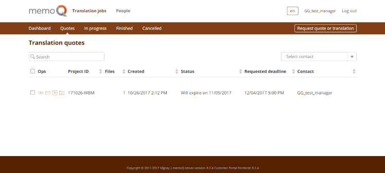 Depending on your user role in customer portal, you will find various actions in the Ops column on this page. Your provider's PM can help you if you are not sure about your role.