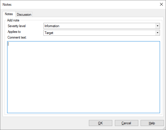 - Under Add note, from the Severity level drop-down box, choose the nature of the note. You have four choices: Information, Warning, Error, Other. Your organization decides what you mean by each of these.