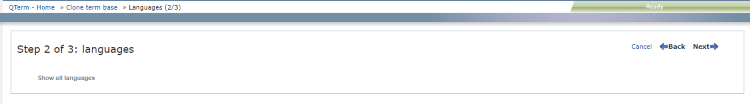 - To close the wizard and return to the Home screen without cloning the term base, in the upper right corner, click Cancel.